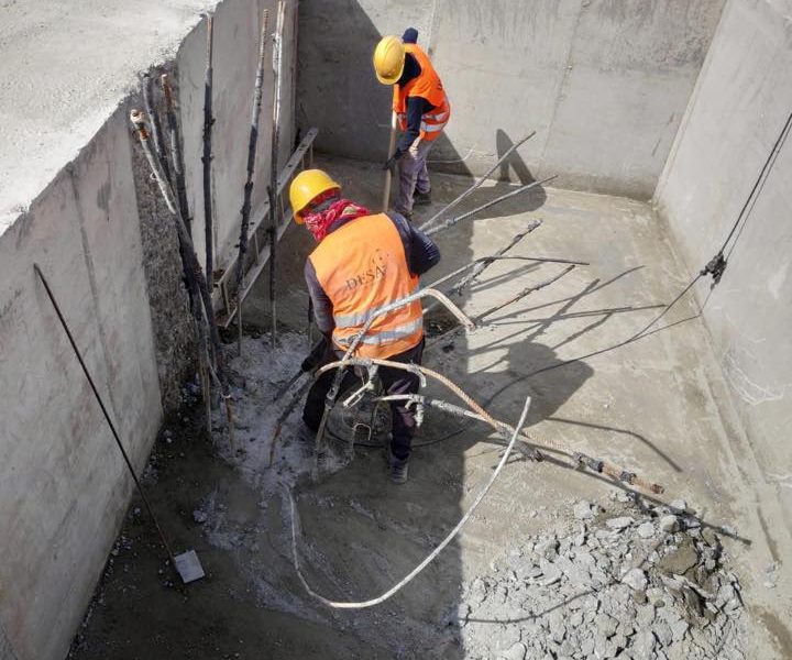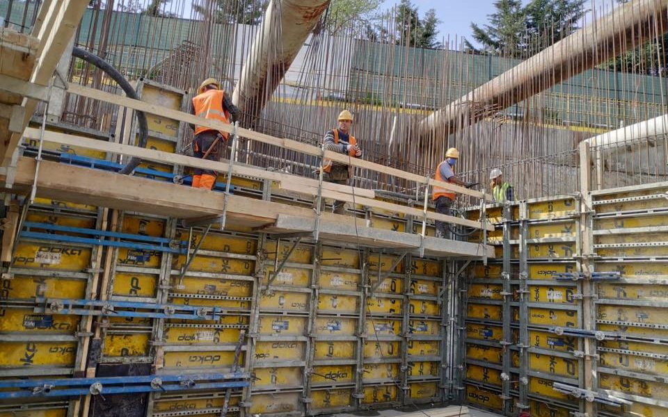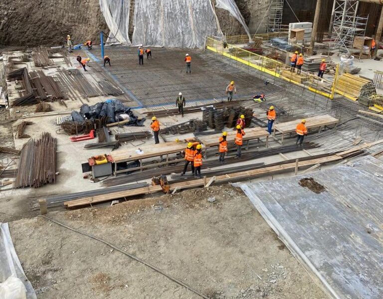 Arbeitsumfang: Ausführung der Rohbauarbeiten von 3 Untergreschossen, einem 16-geschossigen Büro-, 19-geschossigen Wohn- und einem Gewerbe-Erdgeschoss (BGF 60.000 qm)