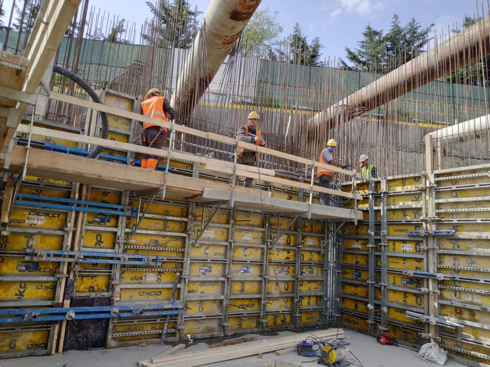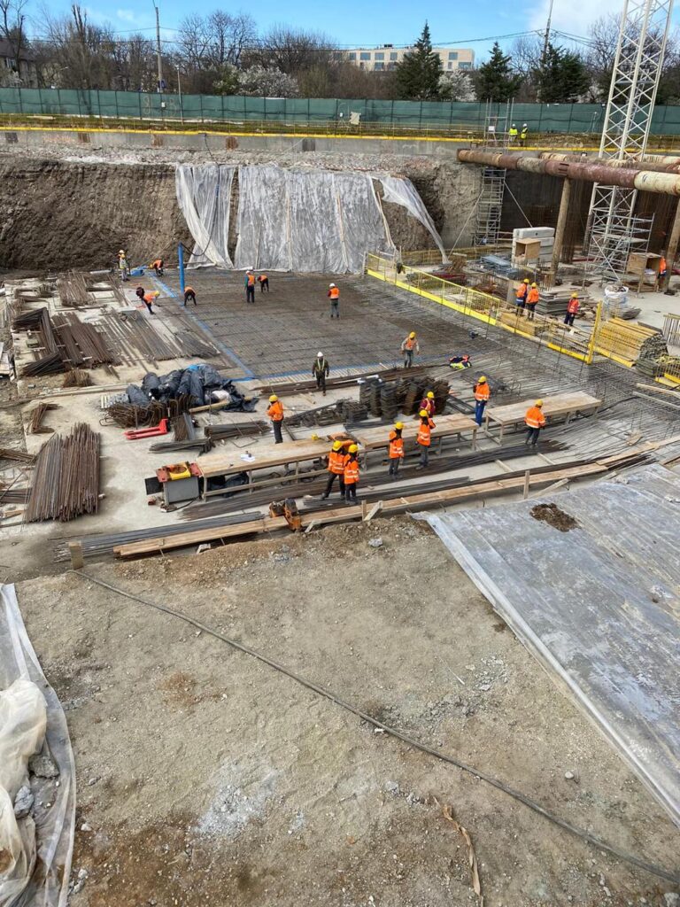 Arbeitsumfang: Ausführung der Rohbauarbeiten von 3 Untergreschossen, einem 16-geschossigen Büro-, 19-geschossigen Wohn- und einem Gewerbe-Erdgeschoss (BGF 60.000 qm)